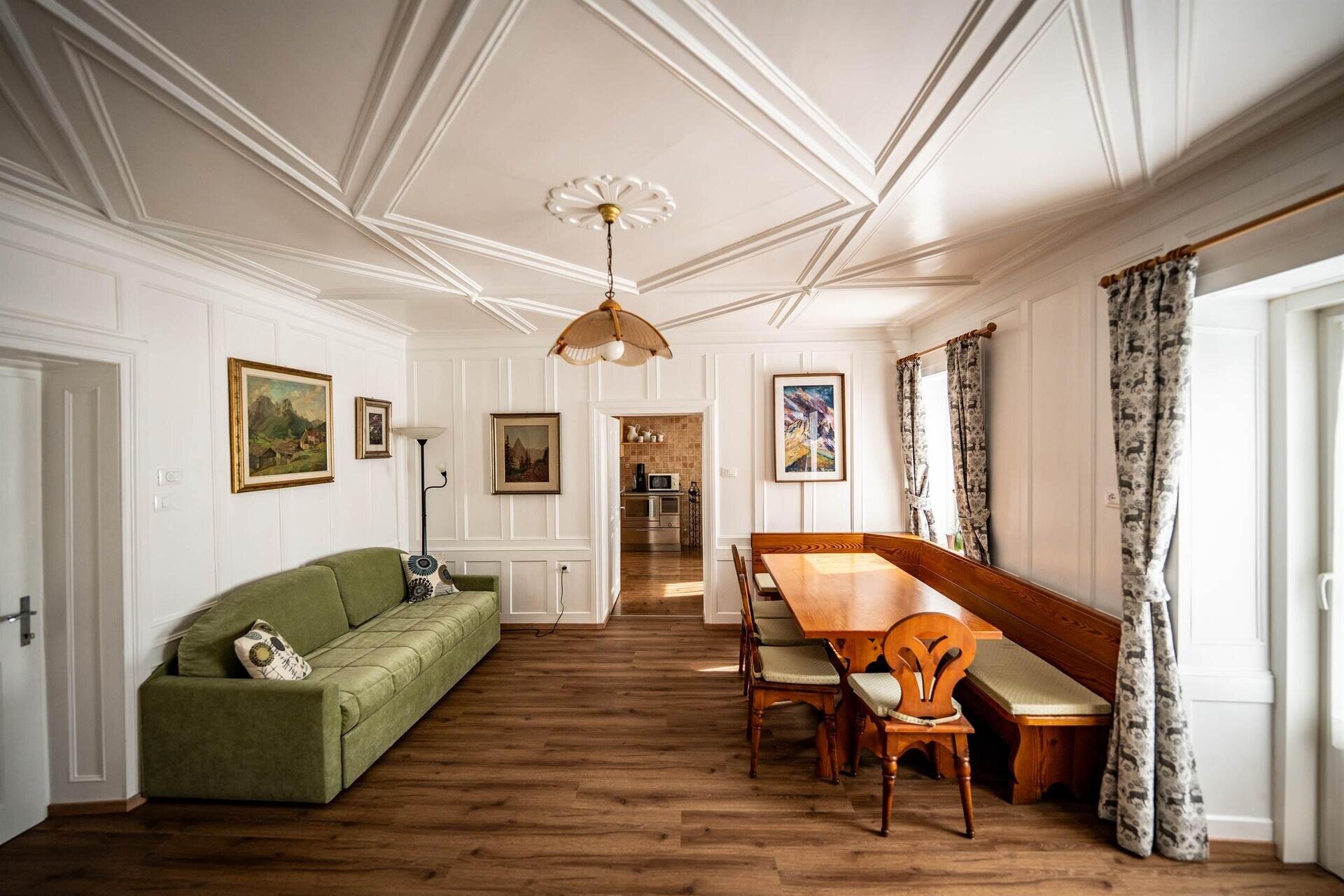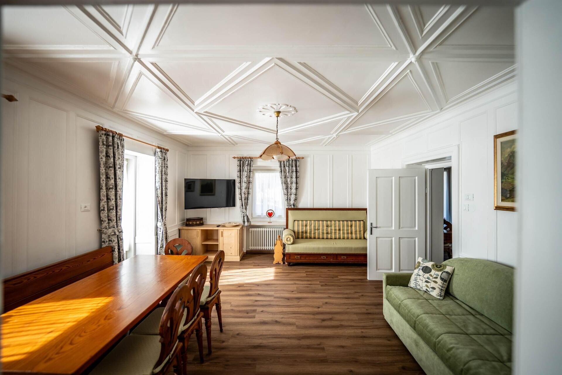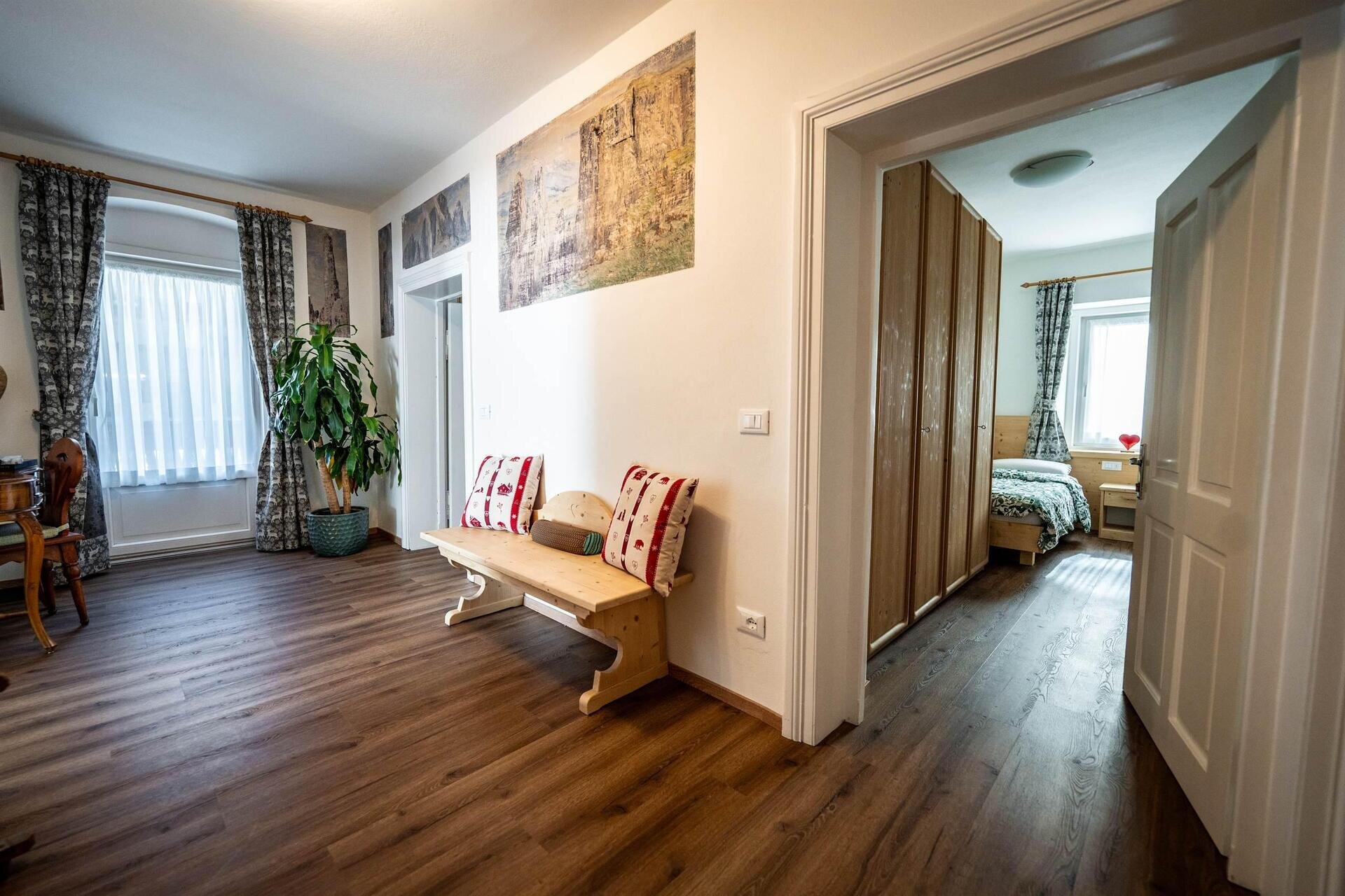 Nuovissimo appartamento sito a Pera di Fassa. Appartamento da 6/8 – max 9posti letto appena ristrutturato di circa 125 mq. Composto da 1 stanza matrimoniale (con possibilità di aggiungere una brandina) con balconcino + 1 stanza singola + una stanza tripla (matrimoniale + singolo). Due bagni di cui uno finestrato con lavatrice e asciugatrice. Grande cucina abitabile separata dalla zona giorno. Ampia sala con doppio divano (un divano letto si può trasformare in due letti singoli con doghe in legno), tavolo da 8 persone e Tv satellitare 50 pollici con possibilità di vedere sky (con proprio decoder, telecomando e cavi), Netflix, Amazon e Disney con proprio account. L’appartamento dispone di tutti i comforts: frigorifero con freezer, lavatrice e asciugatrice, lavastoviglie, cucina induzione, forno normale e termoventilato, forno a microonde, scopa elettrica, macchina caffè Nespresso, Sodastream per fare l’acqua frizzante, visione SKY ( portando la propria scheda e decoder ), TV satellitare 50”, phon e preriscaldatore elettrico fisso in bagno, cassetta di sicurezza; sono forniti di ogni attrezzatura necessaria quali: pentola a pressione, tostapane, bollitore, attrezzatura stiro e bilancia pesapersone. Due posti auto riservati Connessione Wi-Fi gratuita veloce con Fibra Deposito sci con asciuga/scalda scarponi. Doppia fermata Skibus a 150mt. Parco di 8.000mq attrezzato in estate con barbecues, panche tavoli, sdraio, lettini per bagni di sole, zona giochi bimbi (up & down, castello con scivolo, casetta e vari altri giochi), altalene, pallavolo, porte calcio. Mountain-bikes a disposizione gratuita. Parco in condivisione col Residence Cristina SCONTI con Qc Terme, Ristorati, Pizzerie e Noleggio Sci! Su richiesta, ad uso gratuito, seggiolone, lettino da campeggio e spondina per bambini. I nostri amici a 4 zampe sono i benvenuti. Si offre gratuitamente, su richiesta, il kit cane (composto da brandina, ciotole, sacchettini e piccolo giochino).